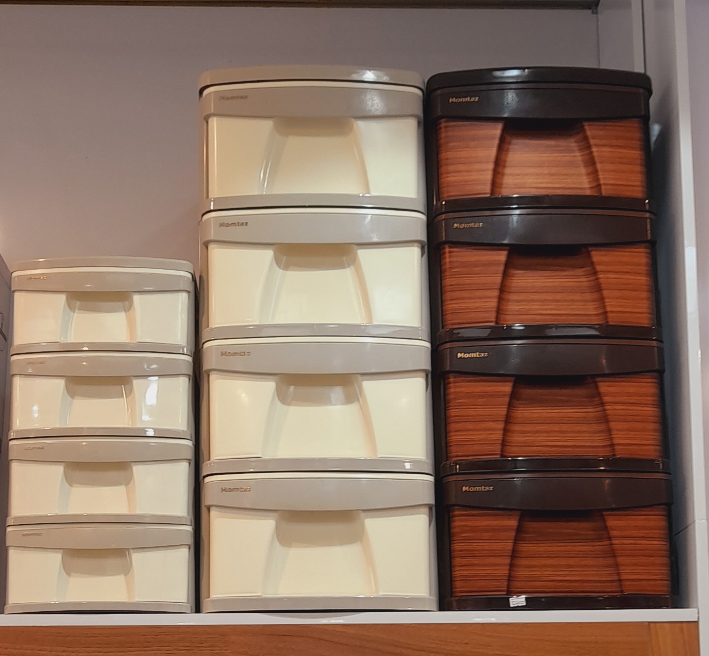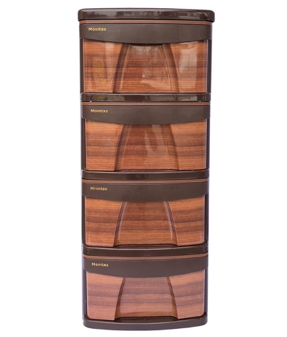 دراور 4 طبقه ممتاز پلاستیک مدل L4 طرح چوب - شکلاتی