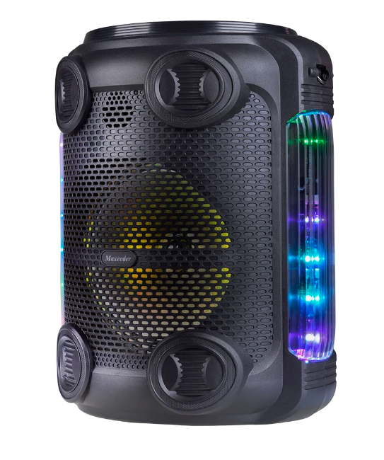 اسپیکر مکسیدر KC807 نهتنها یک اسپیکر باکیفیت صوتی است، بلکه با نورپردازی رنگی و نور جانبی، جلوهای بصری خیرهکننده به مهمانیهای شما اضافه میکند. رقص نور هماهنگ با ریتم موسیقی، فضایی پویا و هیجانانگیز ایجاد میکند که برای جشنها و دورهمیها ایدهآل است. بدنه مقاوم و طراحی چمدانی این اسپیکر، همراه با بند رودوشی، حمل و نقل آن را بسیار آسان کرده و به شما امکان میدهد در هر مکان، از طبیعتگردی تا فضای داخلی منزل، از آن استفاده کنید.