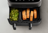 - دو محفظه جداگانه: امکان پخت دو نوع غذا با تنظیمات مختلف دما و زمان.