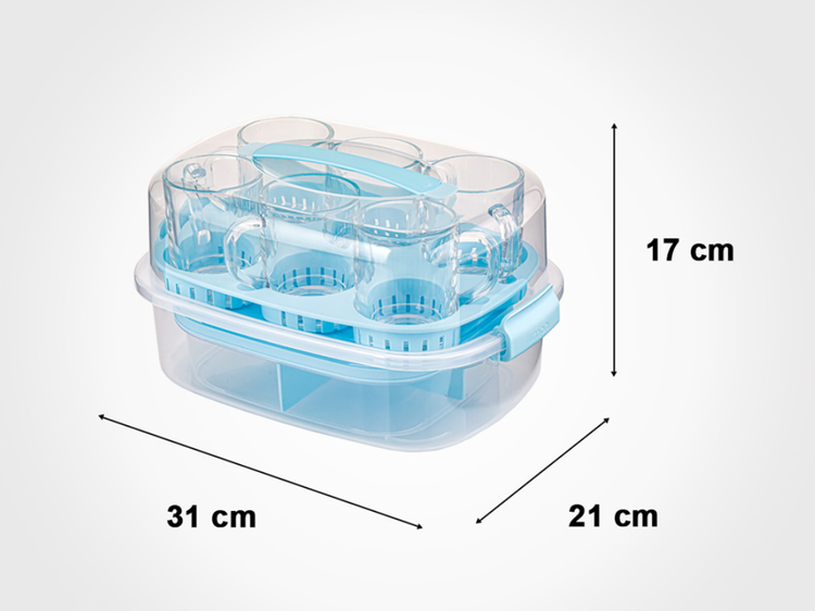 6 عدد لیوان - 1 عدد سینی لیوان - 1 عدد ظرف قند و شکر 3 خانه - 1 عدد باکس