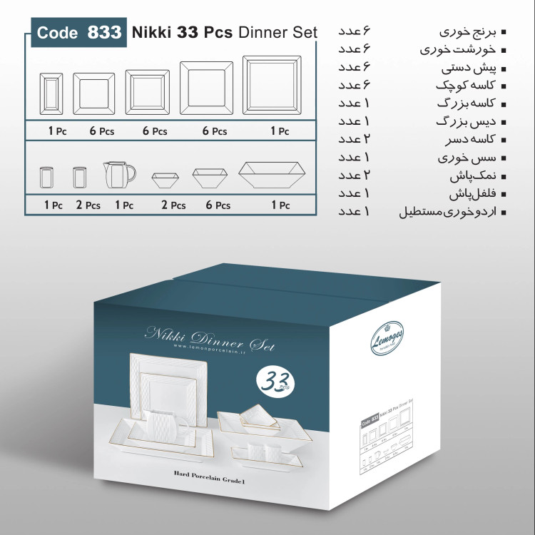 ۳۳ پارچه کاربردی این ست، برای سرو پیشغذا، غذا، دسر، سالاد و حتی دورچین کامل است. اگر برای جهیزیه دنبال یه سرویس مناسب برای مهمونی هات هستی این سرویس فوقالعادهعالیه