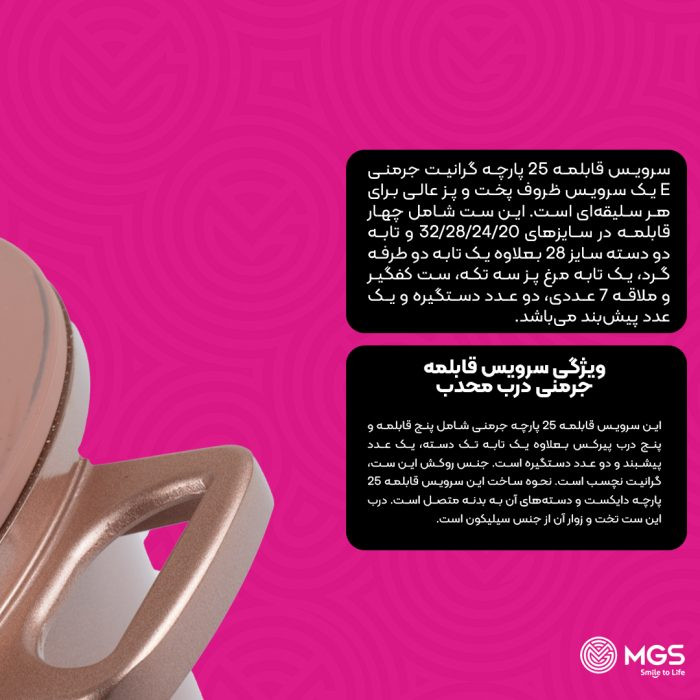 ⭐️ ویژگیهای اصلی سرویس قابلمه MGS مدل جرمنی E (۲۵ پارچه)