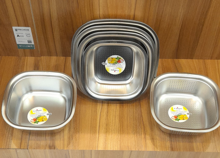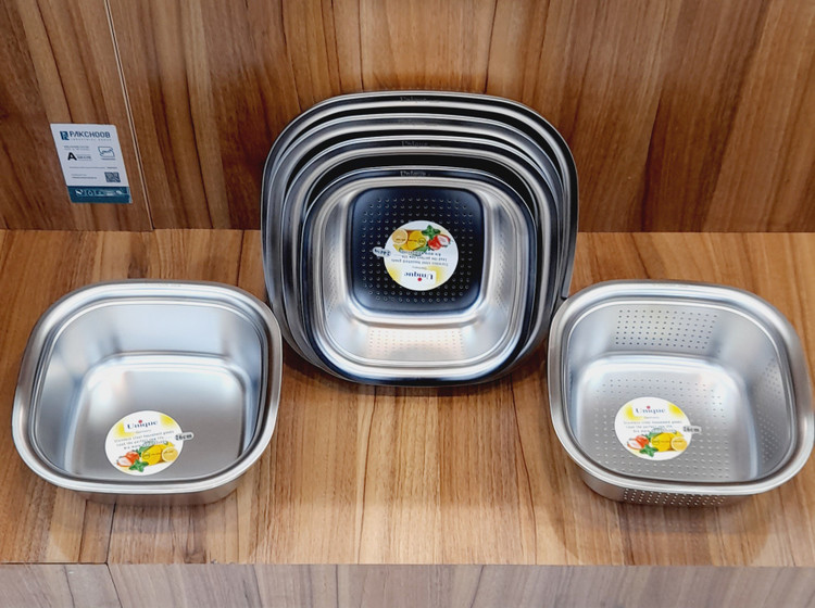 توضیحات کامل ست آبکش و لگن استیل ۱۰ پارچه ۴گوش / مربع یونیک