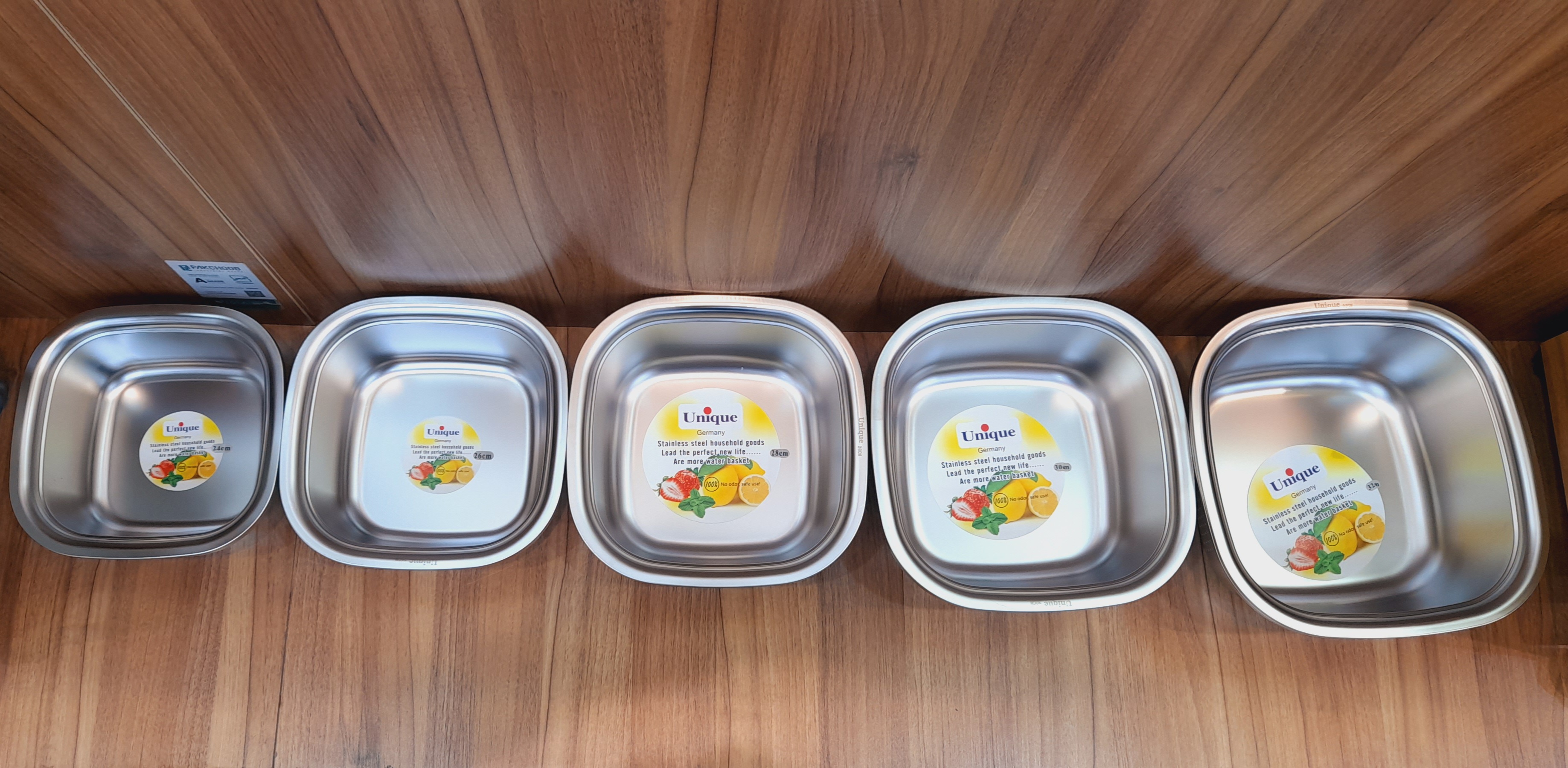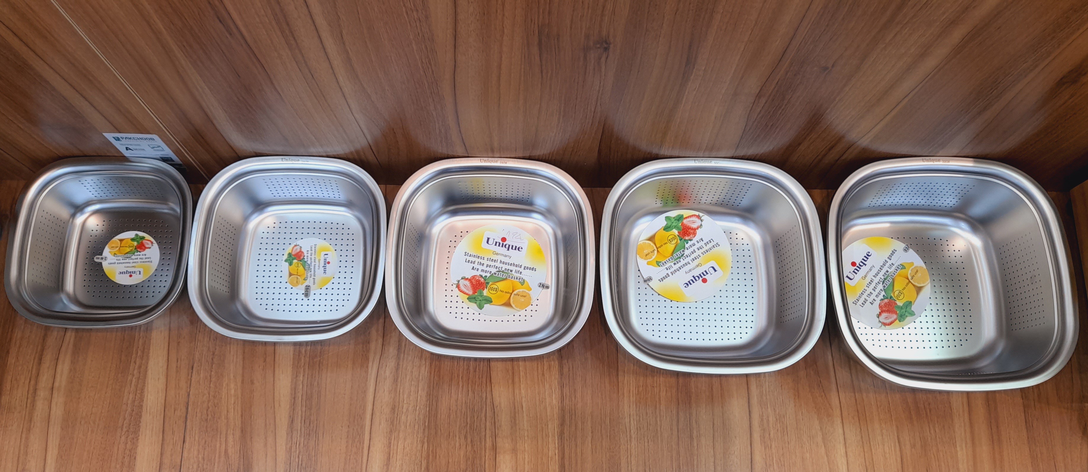 توضیحات کامل ست آبکش و لگن استیل ۱۰ پارچه ۴گوش / مربع یونیک