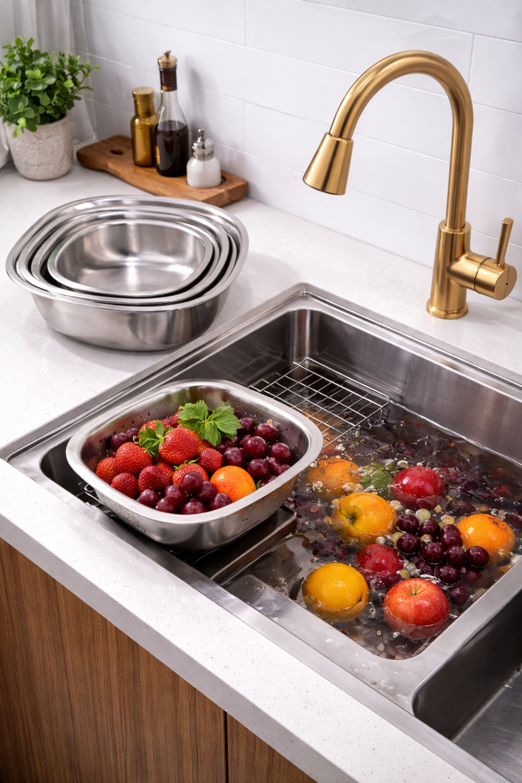سبک و کاربردی: هر لگن و آبکش راحت قابل جابهجایی و شستشو است.