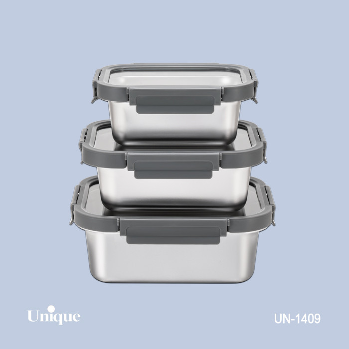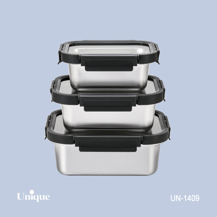 ظرف ۳ تیکه استیل درب شیشه ای یونیک مدل UN-1409 یک انتخاب کاربردی و بهداشتی برای نگهداری مواد غذایی در یخچال و کابینت است. بدنه استیل مقاوم در کنار درب شیشهای شفاف، ترکیبی از دوام، زیبایی و کنترل محتوا را فراهم میکند.