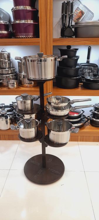 بدنه این سرویس از استیل ضدزنگ با کیفیت بالا ساخته شده که در برابر زنگزدگی، تغییر رنگ و ضربه مقاومت بسیار خوبی دارد. استفاده از استیل مرغوب باعث میشود طعم غذا حفظ شده و قابلمهها در طول زمان ظاهر براق خود را از دست ندهند.