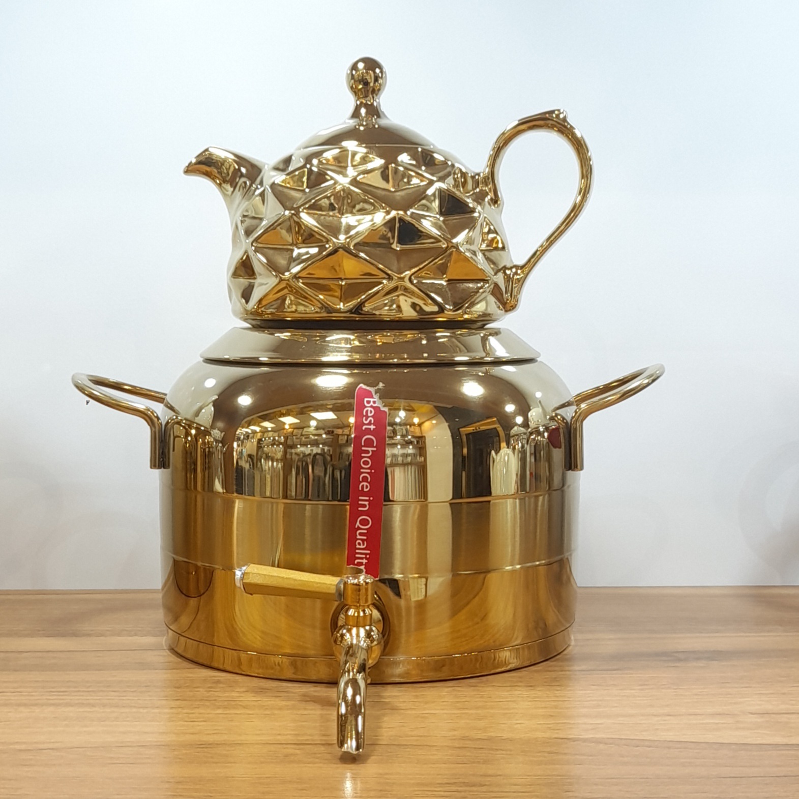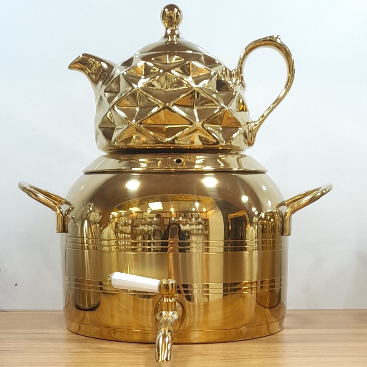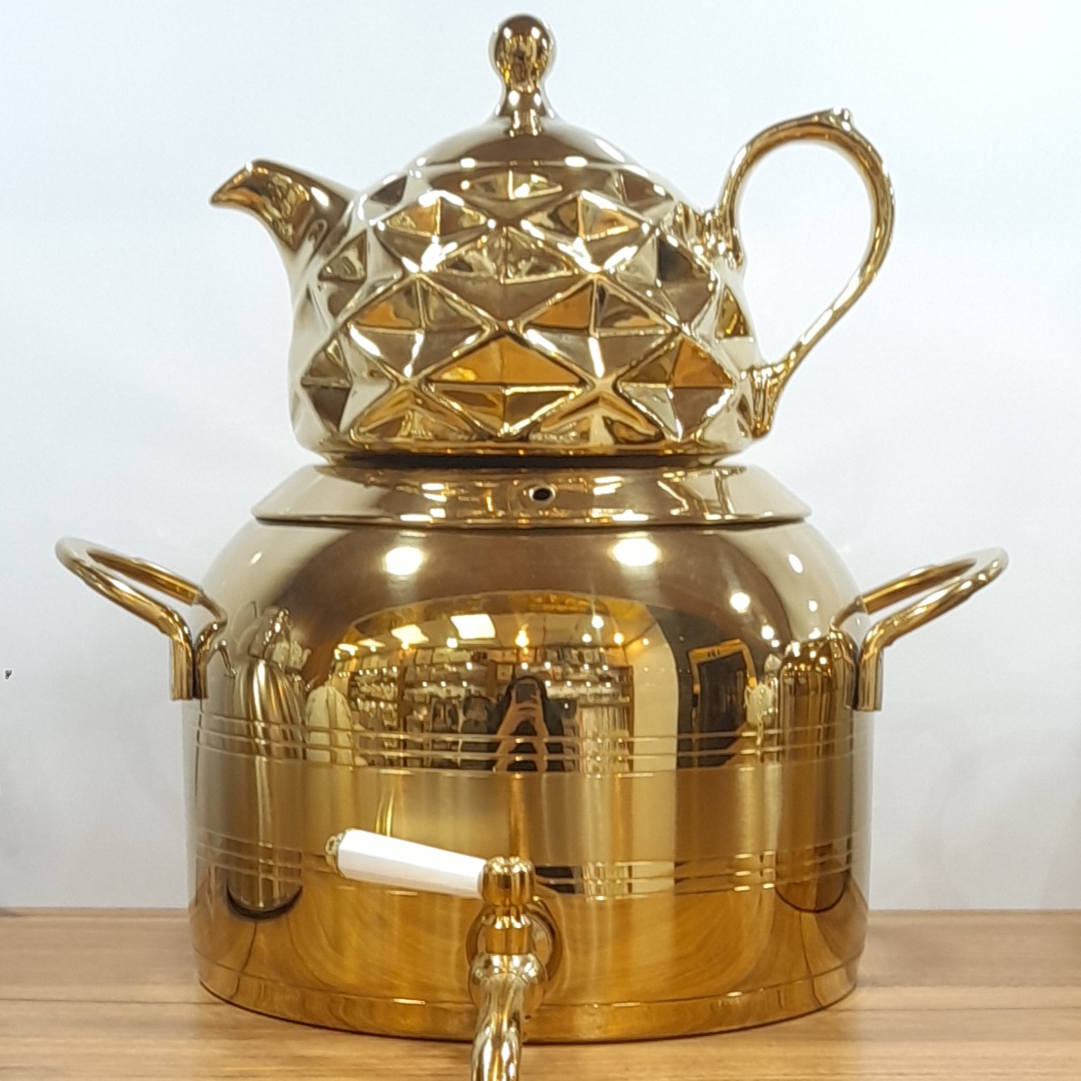 ظاهر لوکس با ترکیب استیل طلایی و قوری چینی