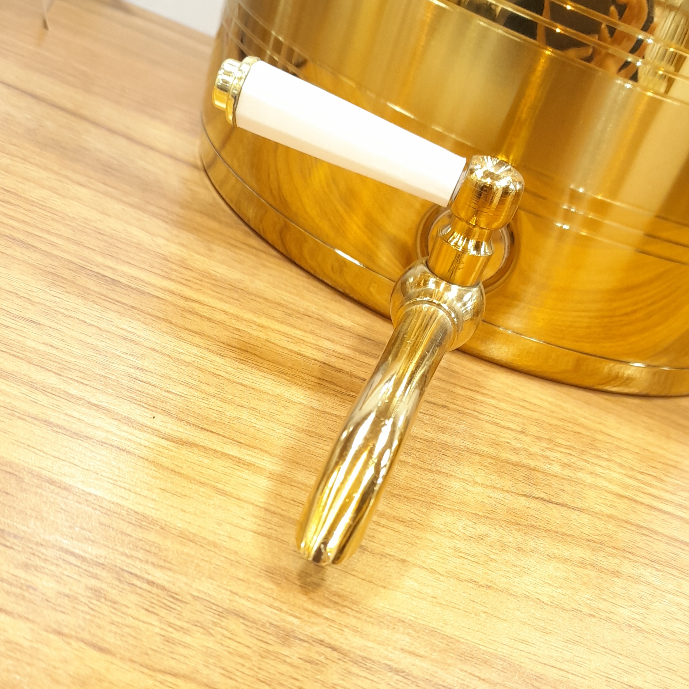 کتری از استیل ضد زنگ طلایی با دسته طلایی ساخته شده و قوری آن چینی است. این ترکیب دوام بالا، ظاهر لوکس و تجربه دمآوری عالی چای را تضمین میکند.