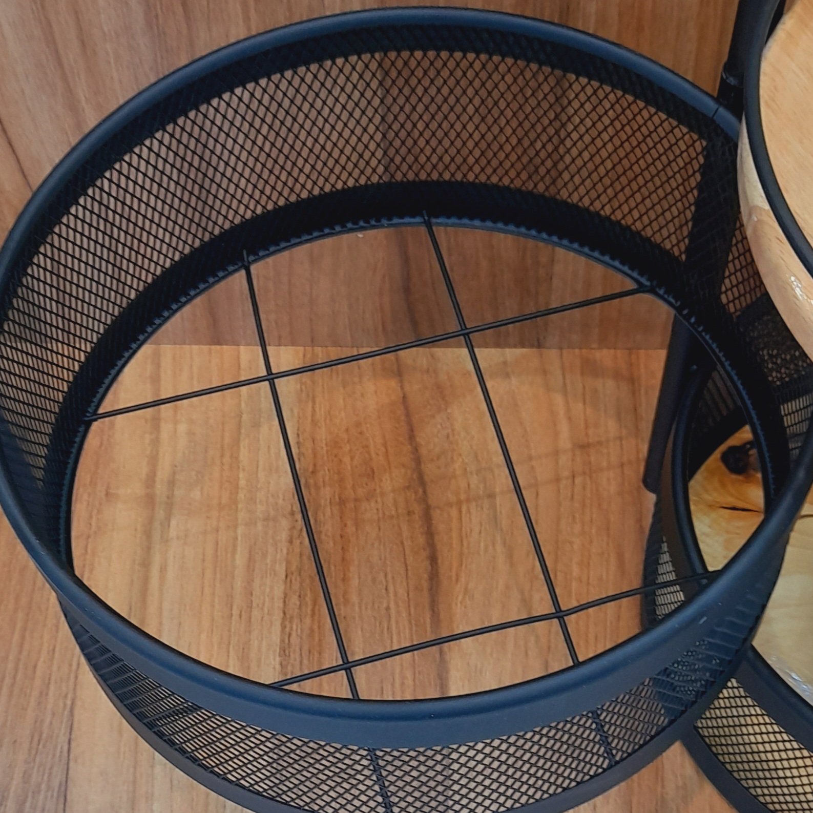 گرد با حالت توری که باعث گردش هوای آزاد درون سبد می شود. محفظه مناسبی است تا پوست پیاز و ... محیط را آلوده نکند