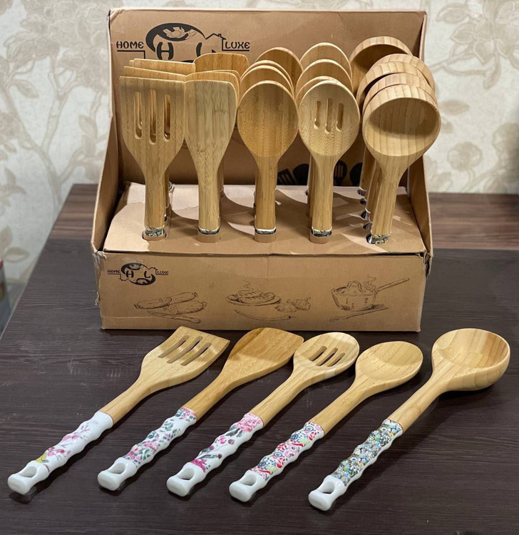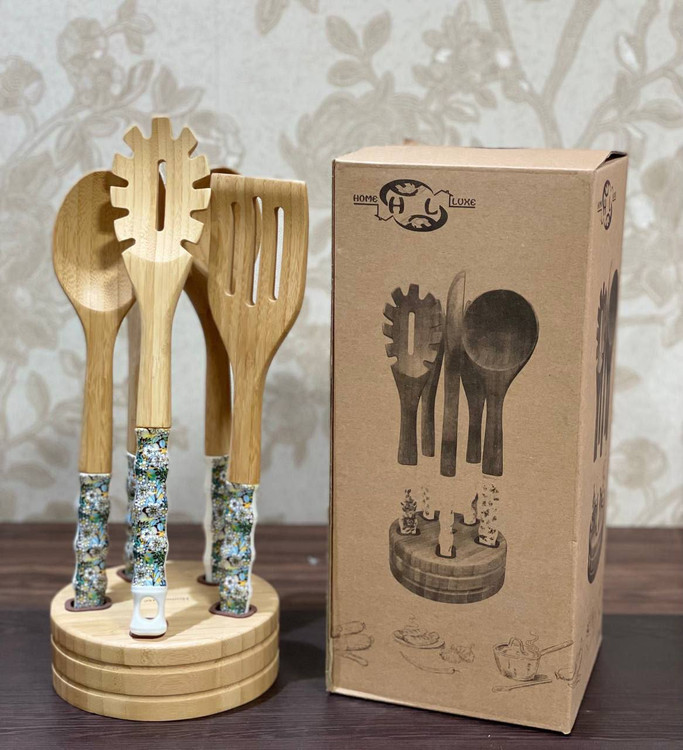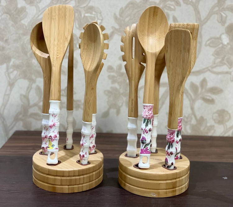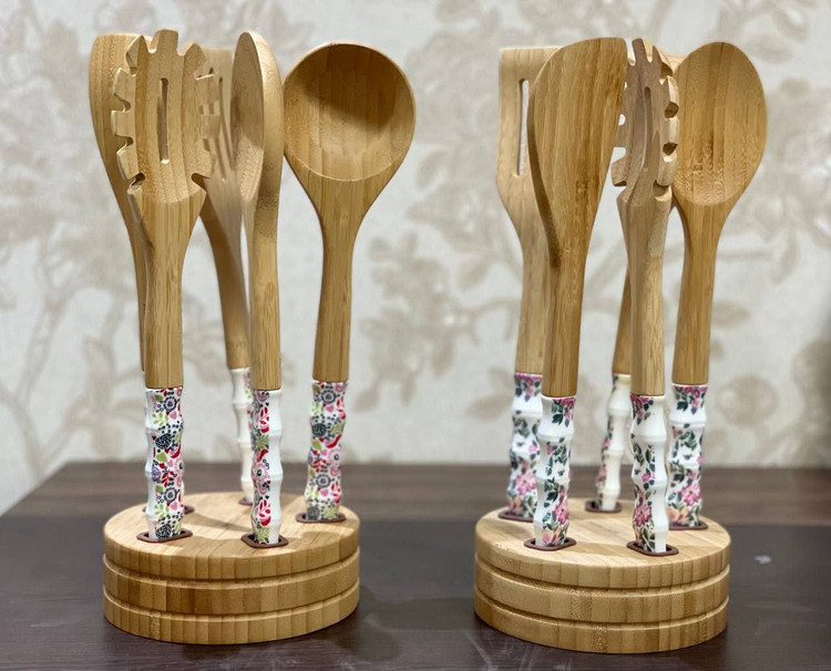 دارای : پایه بامبو - کفگیر . ملاقه . کفگیر باز . قاشق سوپ . پاسکال ماکارانی