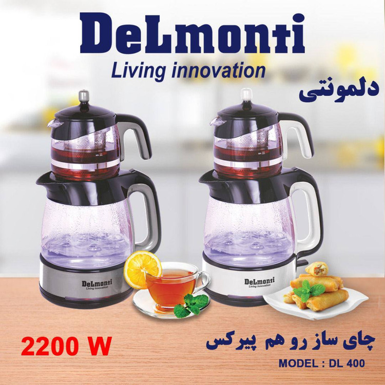 چای ساز دلمونتی DL400 ، بزرگترین چایی ساز کمپانی دلمونتی است. ظرفیت کتری این چایی ساز ، ۲٫۵ لیتر می باشد. ظرفیت قوری چای ساز دلمونتی ، DL400 نیز یک لیتر می باشد. قدرت این چایساز ، معادل ۲۰۰۰ وات است. این قدرت باعث می شود آب در کمترین زمان جوش بیاید. وزن چای ساز دلمونتی DL400 نیز ۱٫۹ کیلوگرم است. این دستگاه ، یک چایی ساز روهم است. شما هنگام گذاشتن قوری بر روی کتری ، باید درب کتری را بردارید. قابلیت چرخش ۳۶۰ درجه از دیگر ویژگی های چای ساز دلمونتی DL400 است. این دستگاه یک محل برای جمع آوری کابل برق نیز دارد. ضمن آنکه چای ساز دارای فیلتر آهکی نیز میباشد. این فیلتر ، رسوب آب را گرفته و چای شما بسیار خوش رنگ تر و خوش طعم تر می شود. یک نوار استیل نیز دستگیره قوری را بر روی قوری چای ساز دلمونتی DL400 کیپ نموده است.