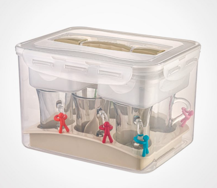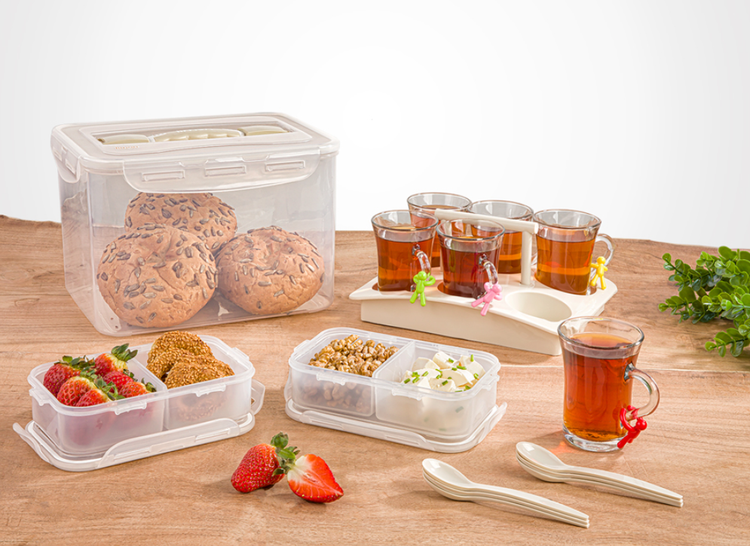 ست پیک نیک 6 نفره لیمون مجموعه ای بسیار کاربردی شامل 6 عدد لیوان و 6 عدد قاشق چای خوری و 1 سینی با جای جداگانه جهت لیوان است همچنین 2 عدد ظرف دردار زیبا و پرکاربرد از اجزای دیگر این مجموعه است که درون آنها می توان قند وشکر و چای ریخت و در پیک نیک از آنها استفاده کرد تمامی این مجموعه ظروف داخل ظرف دردار بزرگی است که دستگیره زیبایی جهت حمل آسان آن روی در ظرف خودنمایی می کند