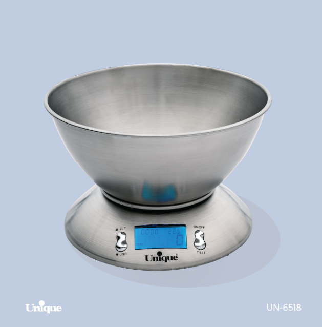 ترازو های کاسه دار را یکی از بهترین ترازوها میخوانند.زیرا طراحی ظرف برای آنها ارگونومیک ترین نوع طراحی برای وزن کردن اقلام و مواد مصرفی درون آشپزخانه است.اکثر کدبانوها خانه دار علاقه دارند تا مواد مصرفی خود را درون ظرف های ژرف و پیاله ای بریزند.ترازو آشپزخانه کاسه دار یونیک کد UN_6518از استیل ساخته شده است و رنگ نقره ای براق و صیقلی اش حکایت از همین دارد. هم بدنه و هم کاسه از استیل اند. کاسه را می توان از بدنه جدا کرد و بدون آن هم از ترازو استفاده کرد. باید به خاطر داشت که کاسه این ترازو می تواند در وزن کردن آب یا شیر که عموما برای طبخ غذاهای مختلف به کار می رود، بسیار کارآمد باشد این ترازوی دارای نمایشگر LCD است و وضوح کافی دارد و اعداد را به درشتی نمایش می دهد. ترازوی یونیک نیازی به تنظیم کردن یا کالیبره ندارد. این کار به صورت خودکار و پس از روشن شدن ترازو انجام می شود. قابلیت جالب توجه این ترازوی آشپزخانه ای داشتن قابلیت توزین در دو واحد وزنی اونس و گرم است. میزان حداکثری توزین در این مدل 5 کیلوگرم است و حساسیت در این مقدار 1 گرم. مقداری متناسب با کارایی یک ترازوی آشپزخانه ای. تغذیه ترازو آشپزخانه کاسه دار یونیک کد UN_6518 از طریق دو باطری قلمی AAA تامین می شود و به این ترتیب هزینه مصرف برق نخواهد داشت. از مجموع توضیحاتی که آورده شد، و در قیاس با قیمتی که بر روی این محصول گذاشته شده، ترازوی یونیک ترازوی با کیفیت و با صرفه اقتصادی بالا قلمداد می شود.