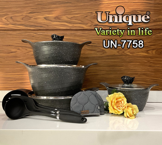 دارای: قابلمهسایزهای۲۰/۲۴/۲۸/تابهسایز۲۸/کفگیروملاقه۳پارچه/۲عدددستگیرهقابلمه