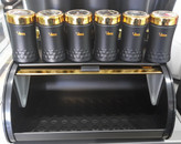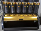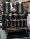 سرویس آشپزخانه مشکی سنباده ای درب طلایی 18 پارچه کریستالی ام جی اس