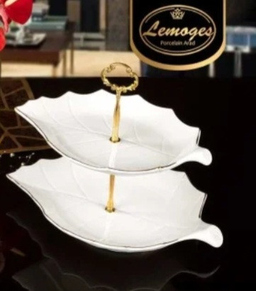 شیرینی خوری لمون طرح برگ یک خط طلا لب طلایی