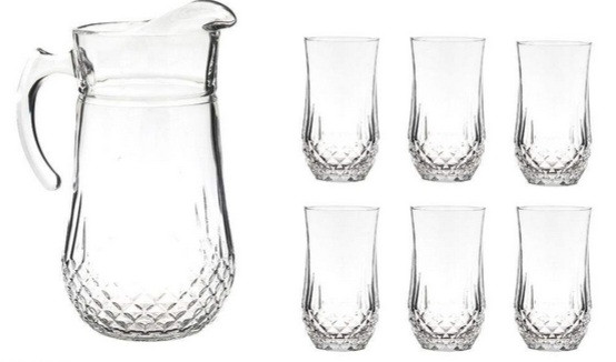 این سرویس هفت پارچه برای تکمیل ظروف آشپزخانه و پذیرایی و سرو انواع آبمیوه، شربت، دوغ و... گزینهای ایدئال است.