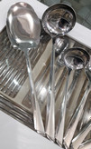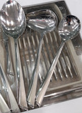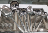 ست قاشق و چنگال یونیک دارای ملاقه برای سوپ و خورش، کفگیر برای برنج و قاشق بزرگ برای کشیدن غذا است.