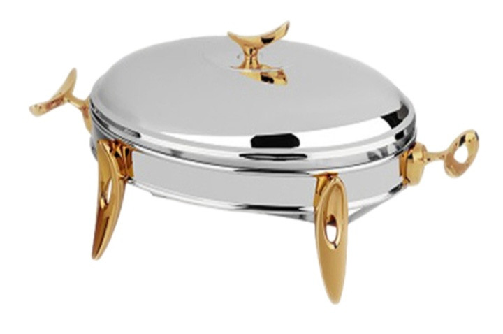 زیر این ظرف دو جا شمعی تعبیه شده و گرمای کافی برای گرم نگه داشتن انواع غذاها را تامین میکند.