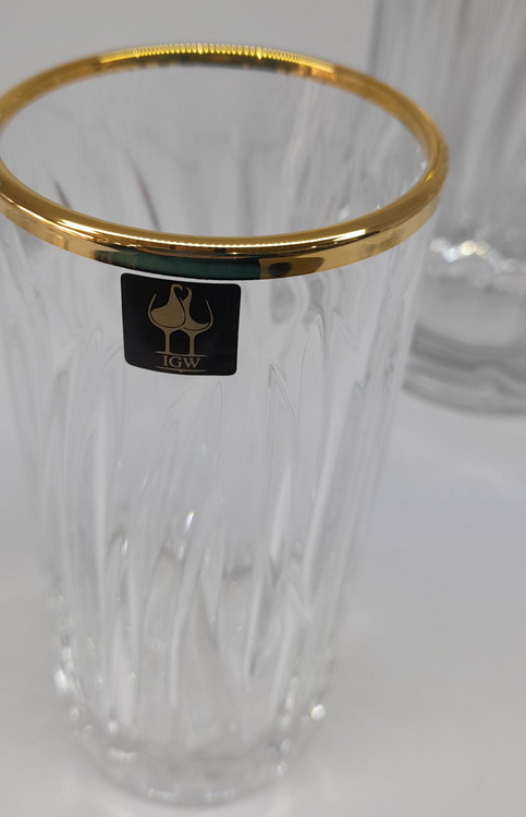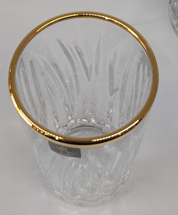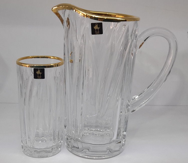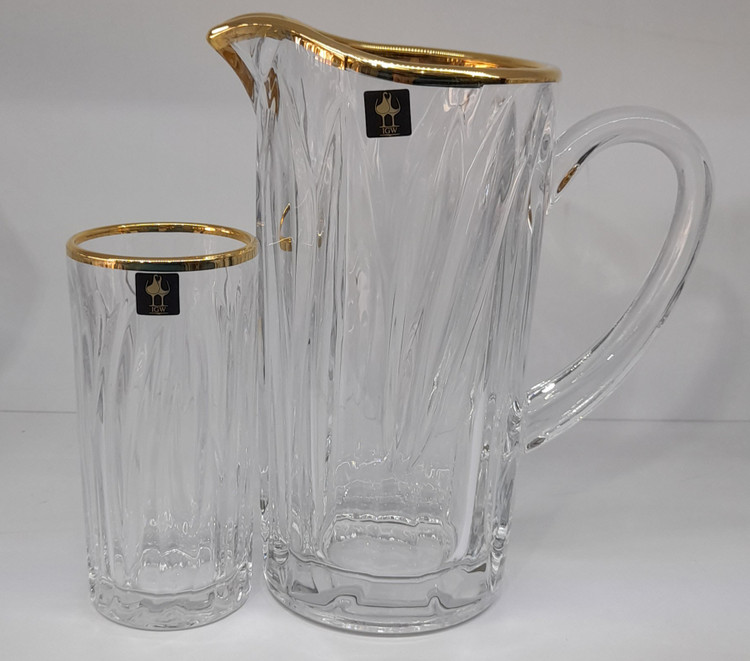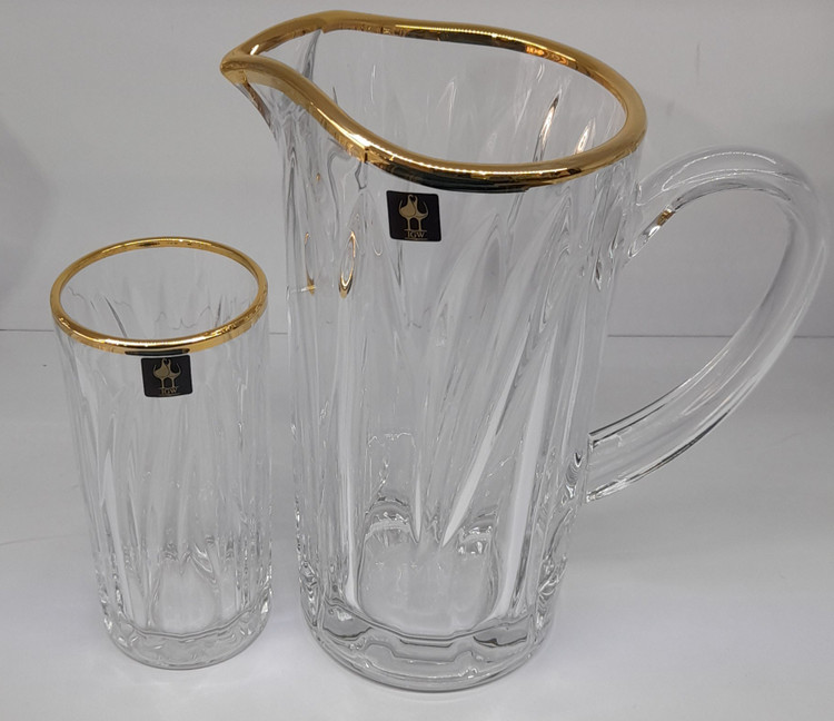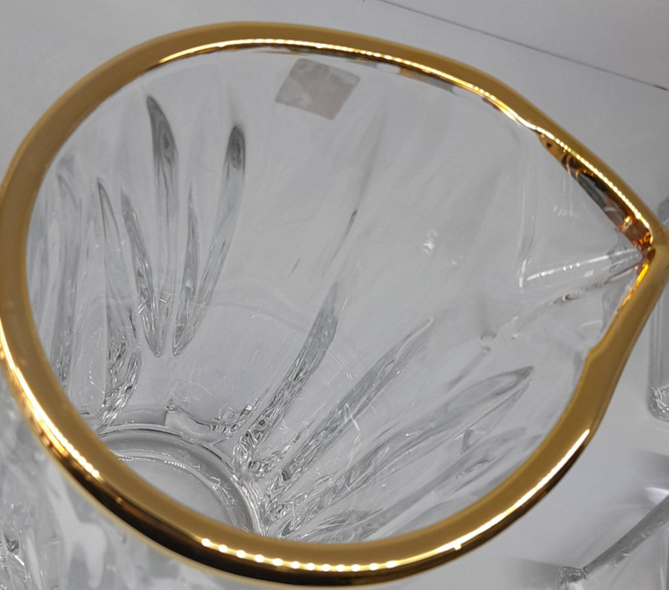 دوستان عزیز لبه طلایی پارچ لیوان ثابت است و پاک نمی شود. ولی برای طول عمر و شفافیت بهتر لبه طلایی بهتر است آن را با مواد اسیدی شست و شو ندهید.