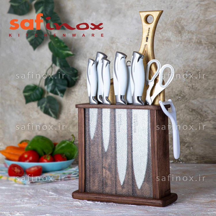سرویس کارد و ساطور سافینوکس همراه با تخته گوشت رنگ صورتی
