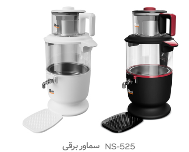 سماور برقی NS-525 یکی از محصولات با کیفیت و کاربردی است که از کتری و قوری تشکیل شده است. این مجموعه کامل برای تهیه چای مورد استفاده قرار میگیرد. این سماور برقی دارای تعدادی المنت میباشد، که این المنتها با جریان برق گرم شده و آب را به جوش میآورند. این نوع چای ساز به دلیل استفاده از جریان برق ظرف مدت زمانی کوتاه آب را به نقطه جوش میرسانند. به همین دلیل از محبوبیت خاصی برخوردارند. موتور قدرتمندی که برای این سماور برقی در نظر گرفته شده دارای توان مصرفی 1800 وات میباشد و همین موتور پر توان در به جوش آمدن سریع آب نقش دارد. ترموستات ویژهای که برای این محصول تعبیه شده از نوع پدالی بوده و ساخت شرکت STRIX انگلستان است.