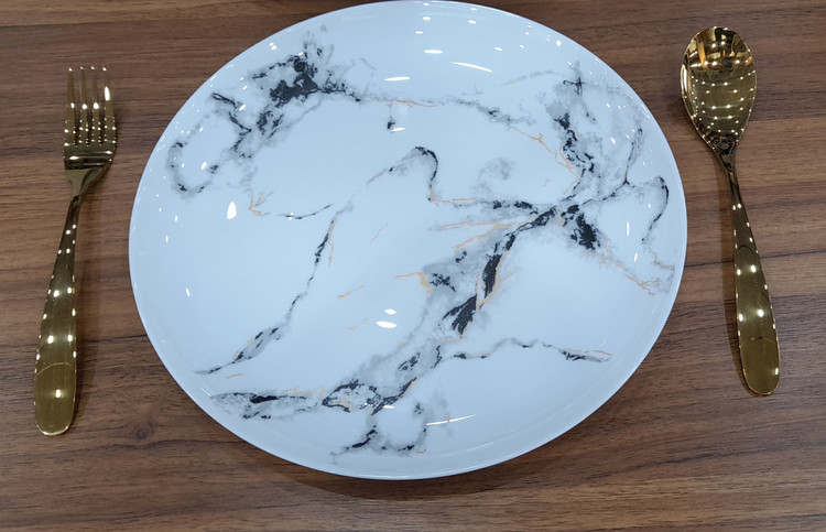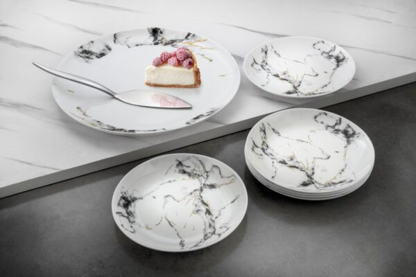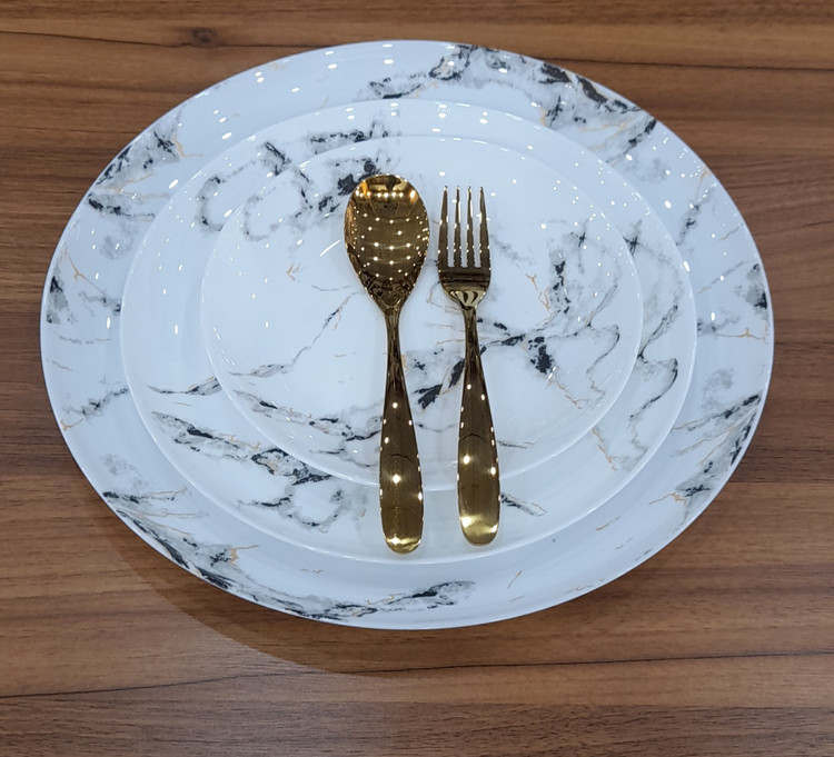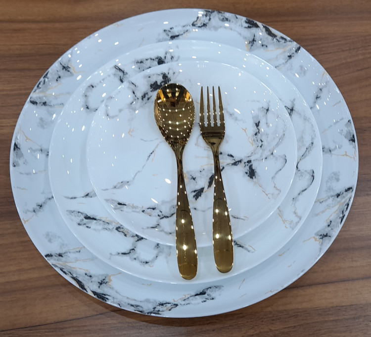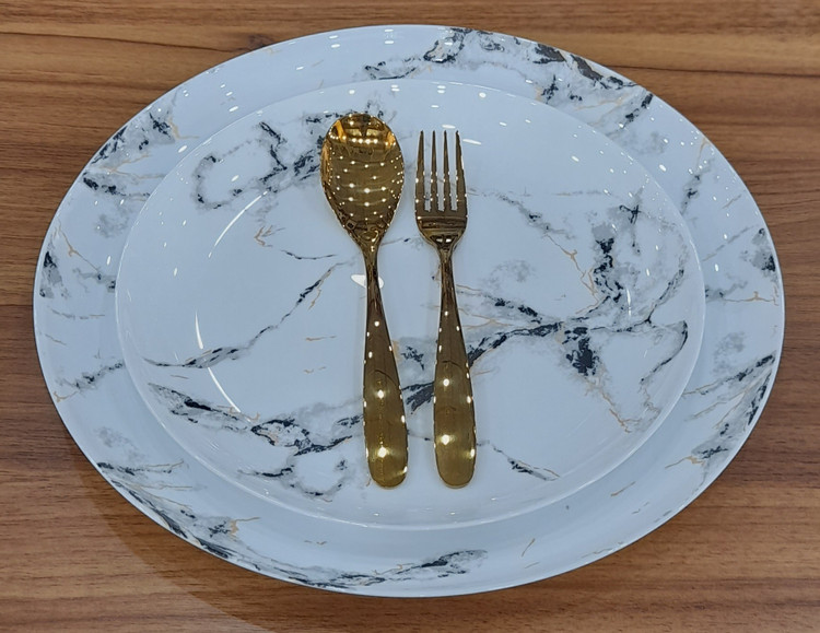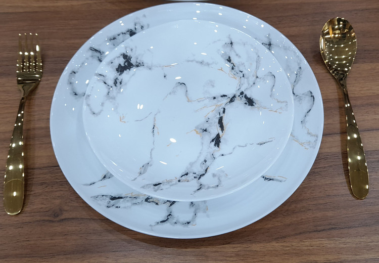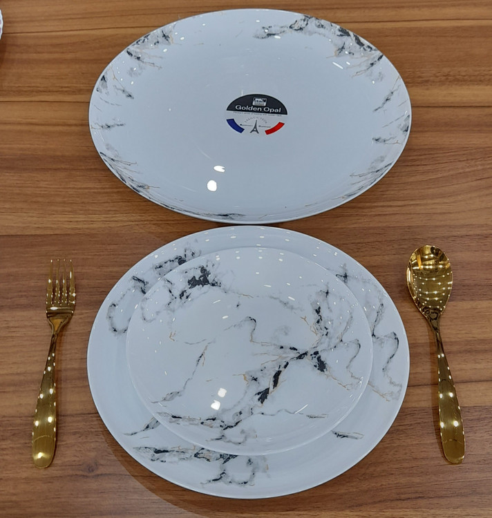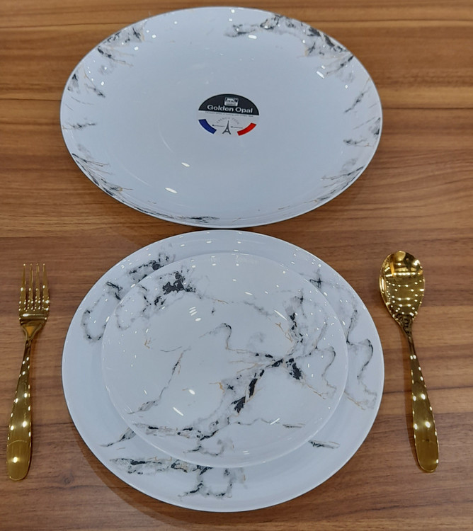 سرویس ۲۶ پارچه قالب Diwali طرح ماربل مشکی طلایی گلدن اپال
