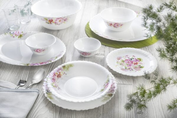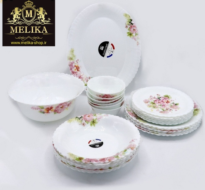 سرویس آرکوپال ۶ نفره ۲۶ پارچه قالب فستون (feston) طرح هلن صورتی گلدن اپال