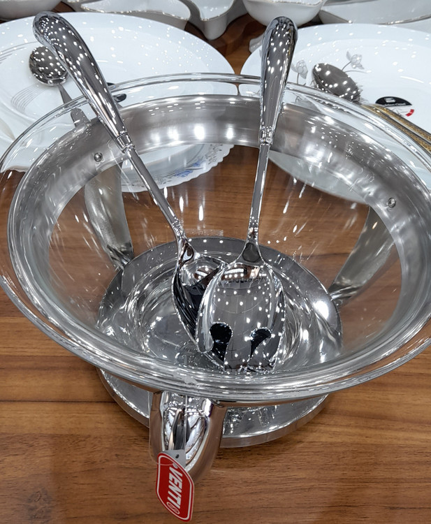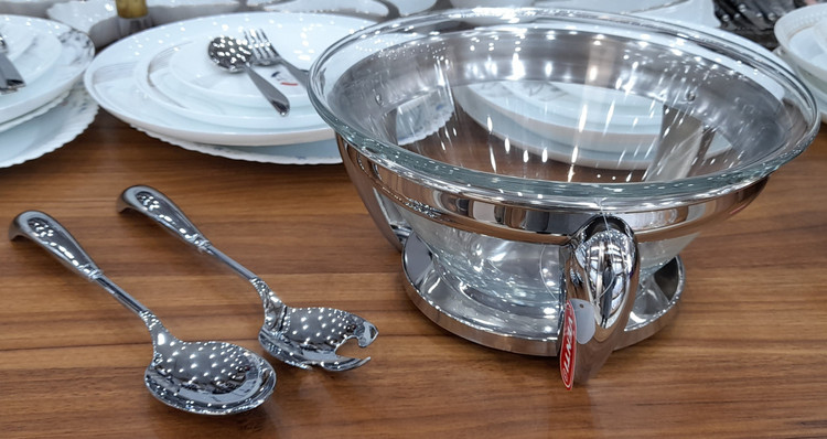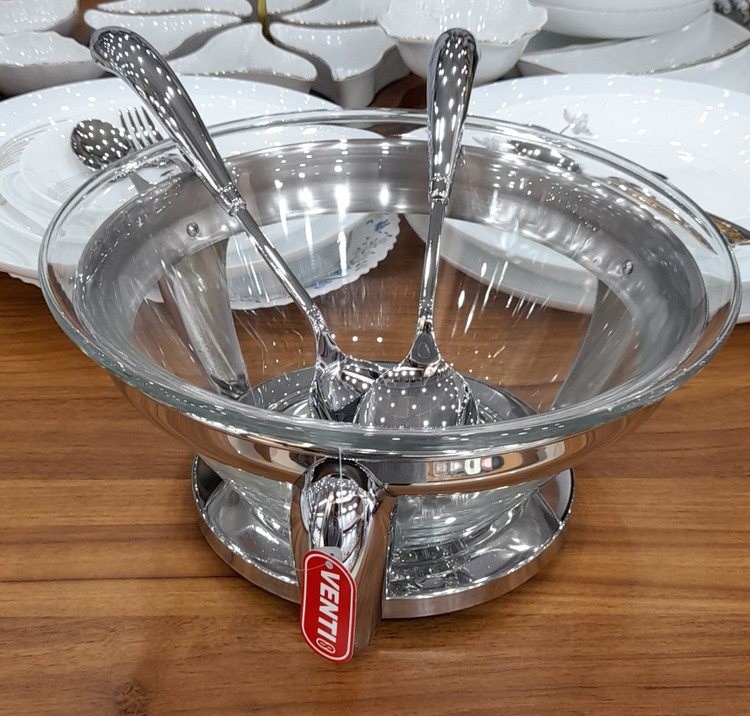 ۴ پارچه - پایه استیل - کاسه پیرکس - ۲ عدد قاشق سالاد