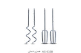 دارای دو سری همزن و خمیرزن میباشد. این سریها بصورت دوتایی مورد استفاده قرارمیگیرند. در واقع برای ورز دادن خمیر باید هر دو سری خمیر زن را به بازوی همزن وصل کرد و برای هم زدن مواد نیز باید هر دو میله همزن را وصل نمود. جنس این میلهها از استیل ضد زنگ بوده و از کیفیت و مقاومت بسیار بالایی در برابر خوردگی و فرسایش و زنگ زدگی برخوردار هستند. میلههای همزن ساختاری چهار پره دارند و این چهار پرده بودن منجر به ایجاد مخلوط یکنواختتری در مدت زمانی کوتاهتر خواهد شد. بدنه اصلی همزن مدل NS-932B را باید به کمک یک دستمال مرطوب تمیز کرد. سریهای همزن را نیز میتوان با آب و مواد شوینده و حتی در ماشین ظرفشویی مورد شستوشو قرار داد.