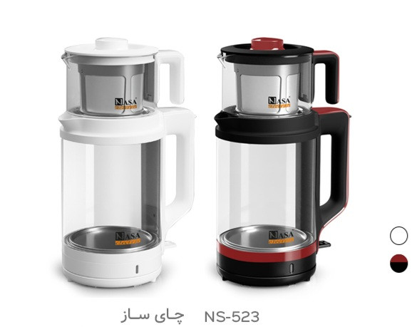 چای ساز رو هم NS-523 یکی از دستگاههای کامل و ایدهآل برای درست کردن چای است. در این مدل چای ساز که برخی آنها را به عنوان دم آور میشناسند، قوری بر روی کتری قرار میگیرد و چای از طریق بخار آب داخل کتری دم میآید. چایی که توسط این نوع از چای ساز آماده میشود طعم و عطر فوق العادهای دارد، که میشود کیفیت آن را با چای سماور هم رده دانست. چای ساز NS-523 دارای توان 1800 وات است، که توانایی جوشاندن آب در عرض چند دقیقه را دارد. توان مصرفی این دستگاه در حالت گرم نگهدارنده 165 وات است. ترموستاتی که برای این چای ساز در نظر گرفته شده از نوع پدالی و اتوماتیک میباشد، که بصورت خودکار بعد از به جوش آمدن آب وارد حالت گرم نگهدار شده و از سرد شدن آب کتری جلوگیری خواهد کرد. کتری و قوری در این چای ساز از جنس شیشه برو سیلیکاتی هستند، که در مقابل حرارت و شوک حرارتی مقاومت بالایی دارند. چای ساز ناسا الکتریک NS-523 قابلیت استفاده بصورت بی سیم را نیز دارد. دستهای که برای کتری در نظر گرفته شده از طراحی آرگونومیکی برخوردار است و از این رو به راحتی میتوان از آن استفاده کرد. ظرفیت کتری در این دستگاه 2 لیتر و ظرفیت قوری 1 لیتر میباشد و این ظرفیت بالا از چای ساز 523 گزینهای ایدهآل برای جمعیتهای متوسط و بزرگ ساخته است. صافی تعبیه شده برای قوری از جنس استیل ضد زنگ 304 بوده و از کیفیت بسیار بالایی بهره میبرد. میزان صدای دستگاه تنها 1.6 دسی بل است، که نشان از کارکرد بی صدای آن دارد.