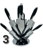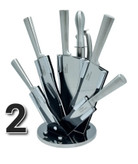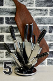 دارای : ۵ طرح کارد و ساطور / ۱ عدد سوهان / ۱ عدد قیچی با طراحی جدید و جذاب/ پایه گردان