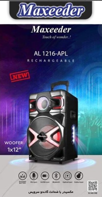 اسپیکر AL 1216-APL مکسیدر از سری RECHARGEABLE شرکت معتبر مکسیدر با کیفیت صدای فوقالعاده و امکانات گوناگون، میتواند شما را در مهمانیها، جشنها، کارائوکهها و فعالیتهای تفریحی همراهی کند.
