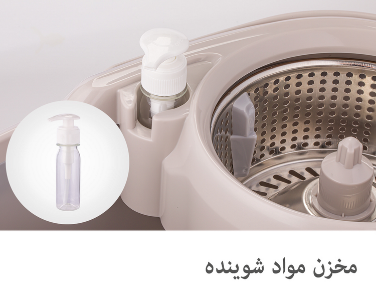 مخزن مواد شوینده - پد میکروفایبر اضافه - نگهدارنده دسته تی - محل خروج آب